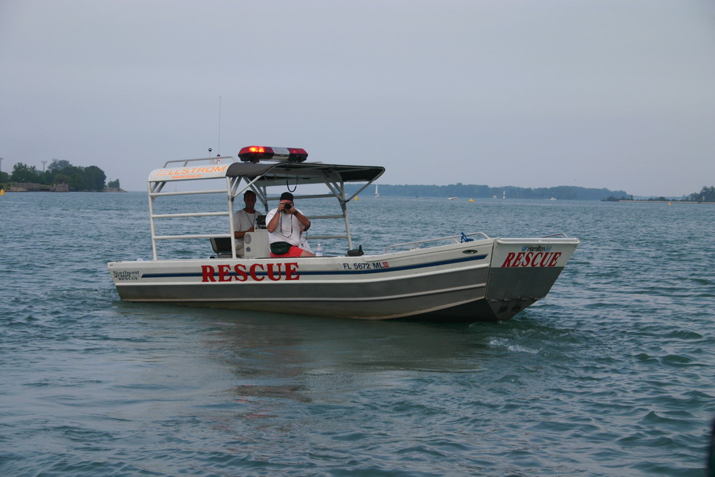 IMG_2443_1024 "Tango 1" rescue boat with crew and divers. Notice the Stokes litter for retrieving a driver from the water. Date: 07/14/2005 "Tango 1" rescue boat with crew and divers. Notice the Stokes litter for retrieving a driver from the water.