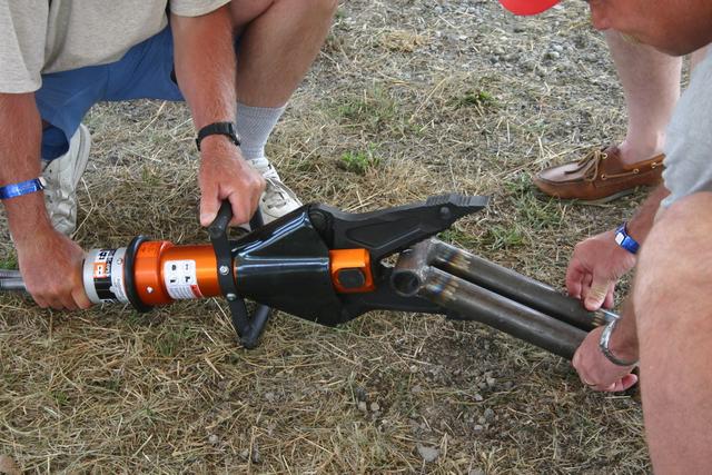 IMG_2460_1024 Practicing with the Holmatro combination tool for extracting a driver. Cuts and spreads with power! Date: 07/14/2005 Practicing with the Holmatro combination tool for extracting a driver. Cuts and spreads with power!