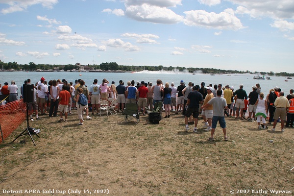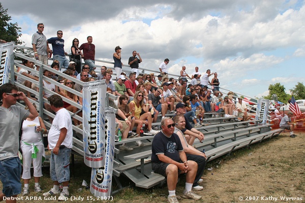 Spectators line the Waterworks Grandstands to watch the action on the river