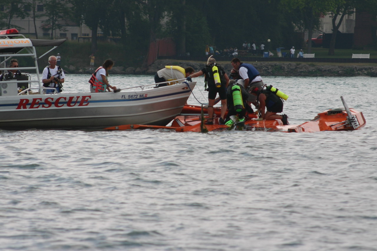 IMG_3184_croppedRescuers carefully tending to J. Michael Kelly after U-2 flips in first attempt of Gold Cup race.