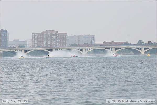 Entering the Belle Isle turn for the 3rd time, one more boat has fallen away from the leaders.