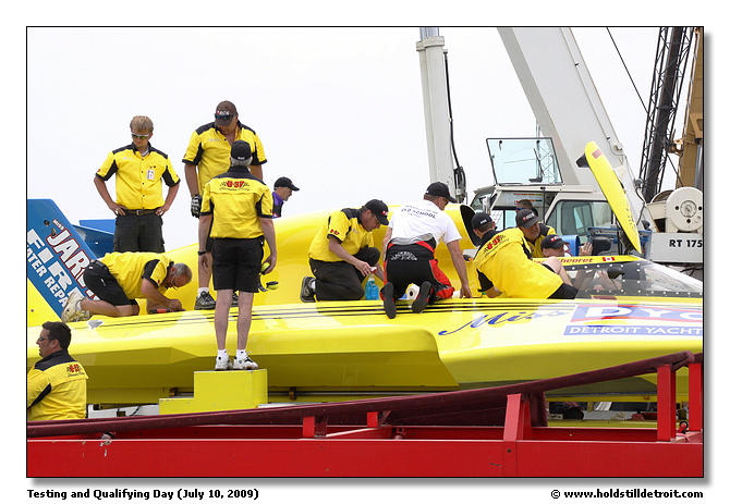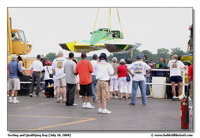 Getting a boat ready for the crane