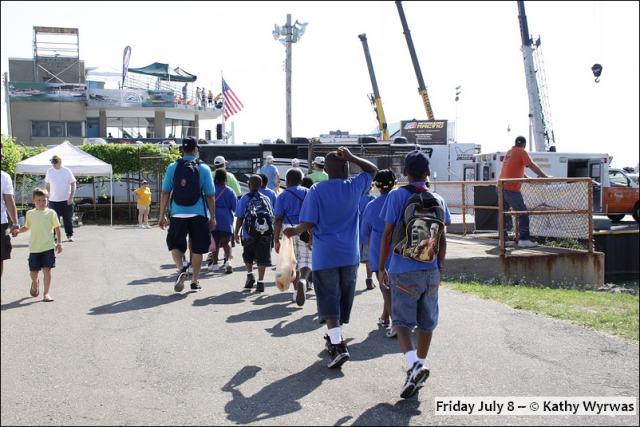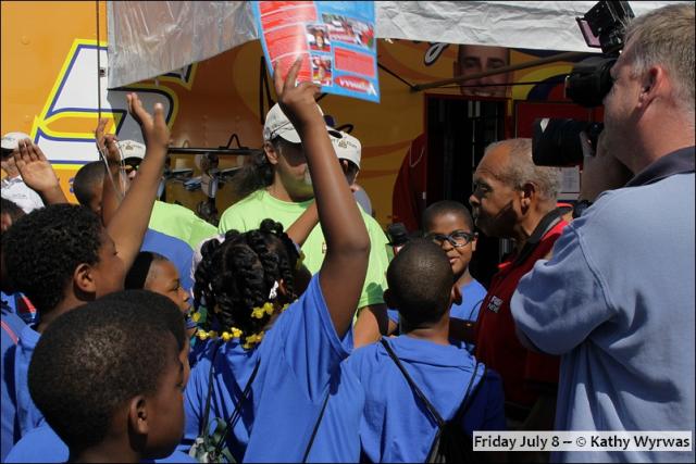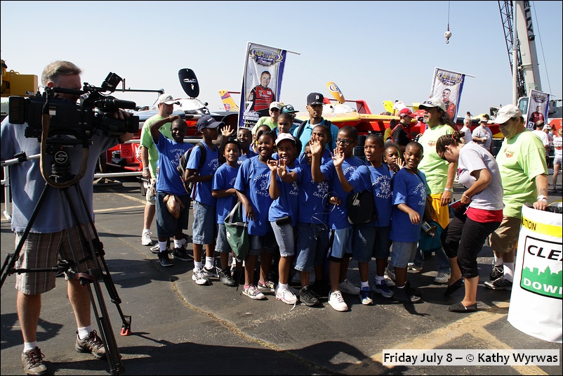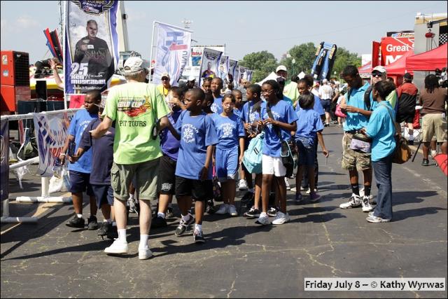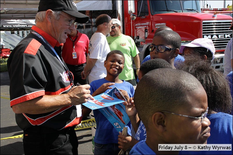 Instead of a media interview, these kids got a great photo op on the U-21 with driver Brian Perkins.