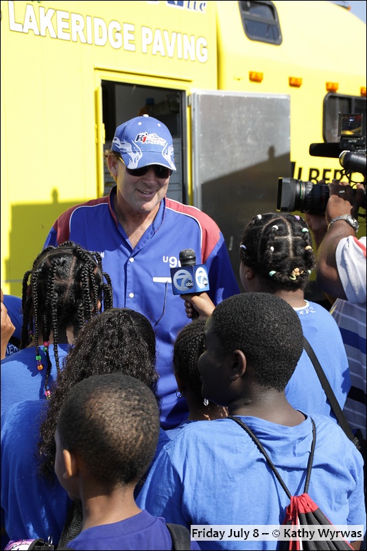 Instead of a media interview, these kids got a great photo op on the U-21 with driver Brian Perkins.