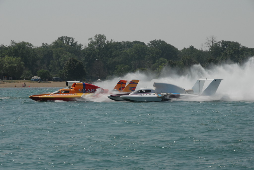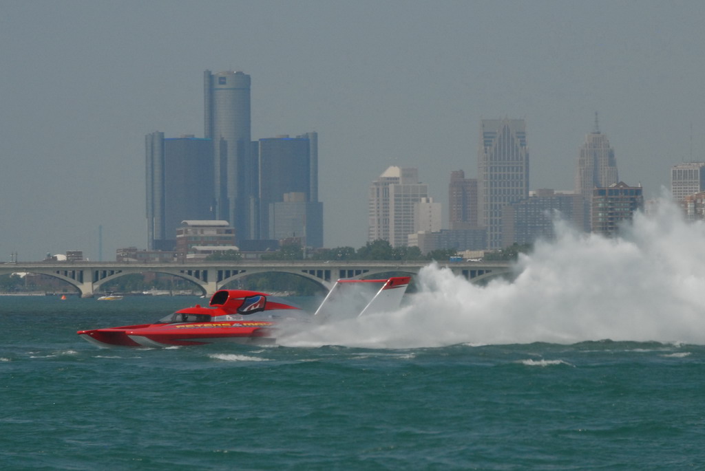 U100 under towGreg Hopp being towed in after the Gold Cup race waving to the fans