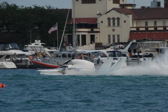 U100 under towGreg Hopp being towed in after the Gold Cup race waving to the fans
