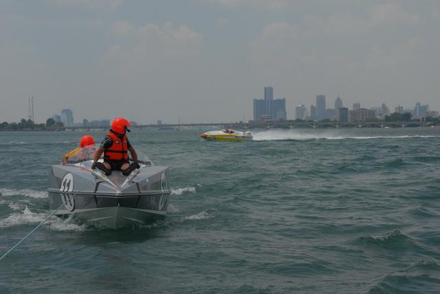 U100 under towGreg Hopp being towed in after the Gold Cup race waving to the fans