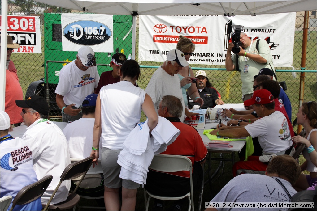 Showing off the "lucky race hat"