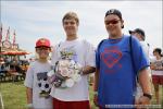 Showing off the "lucky race hat"