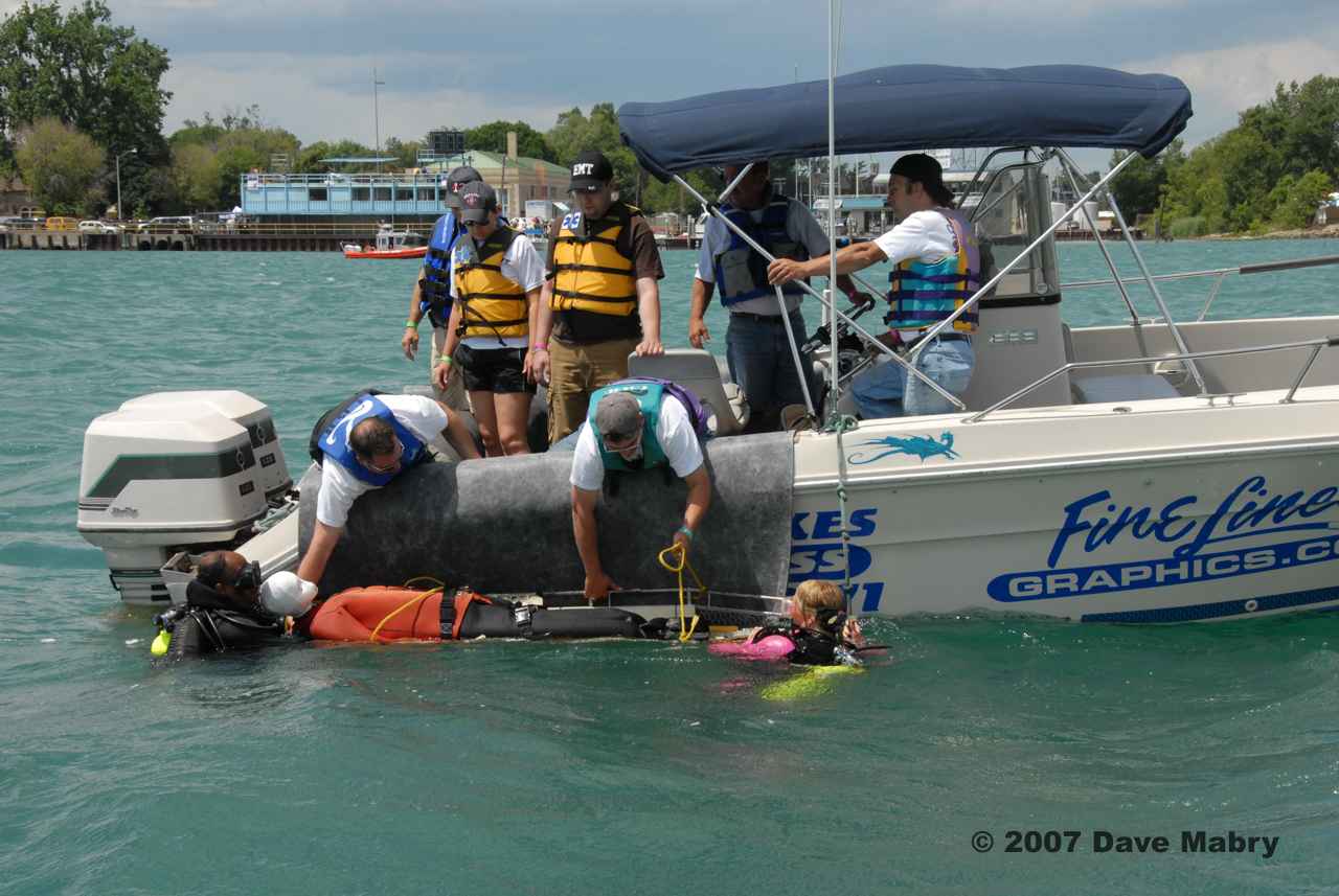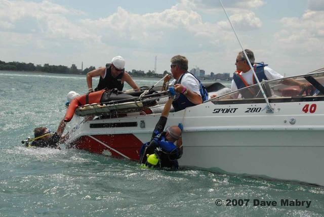 Rescue divers retrieving our "victim"