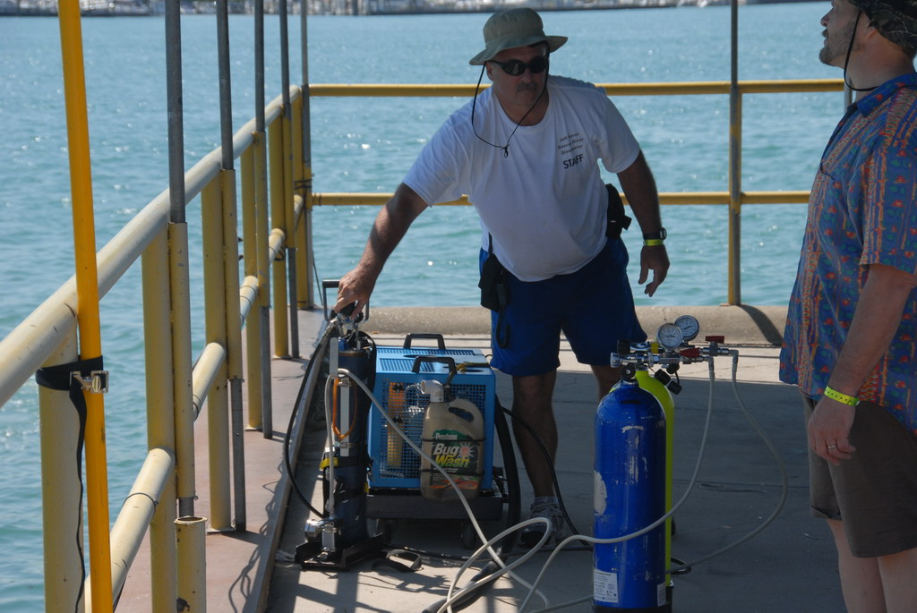 Jeff's filling service Filling SCUBA tanks during a break Date: 07/10/2008 Filling SCUBA tanks during a break