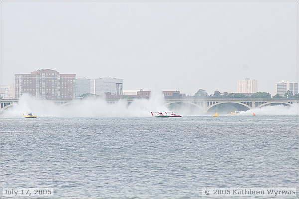 Entering the Belle Isle turn for the 3rd time, one more boat has fallen away from the leaders.