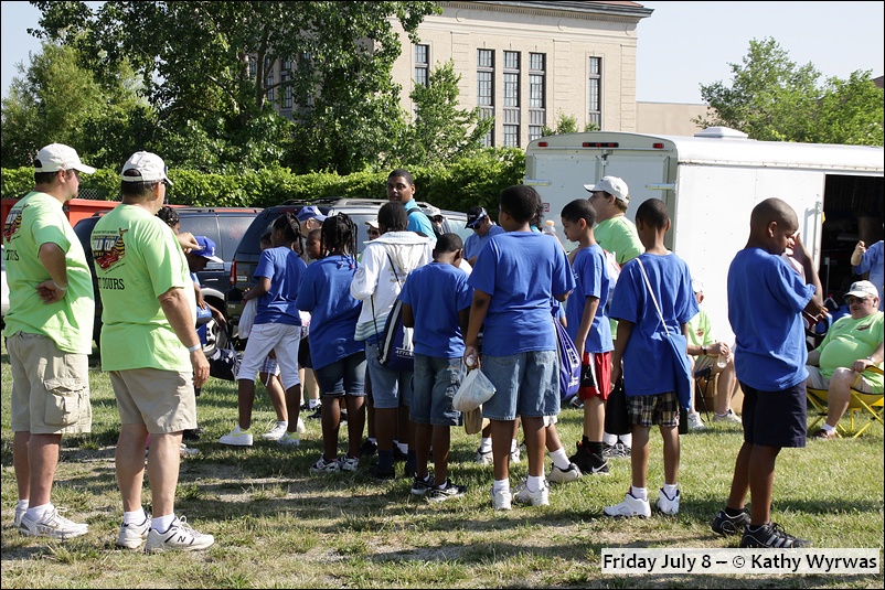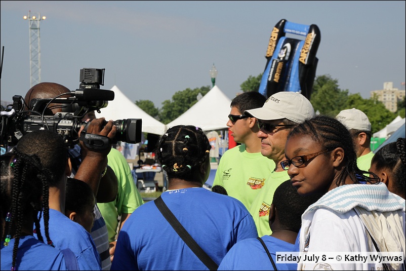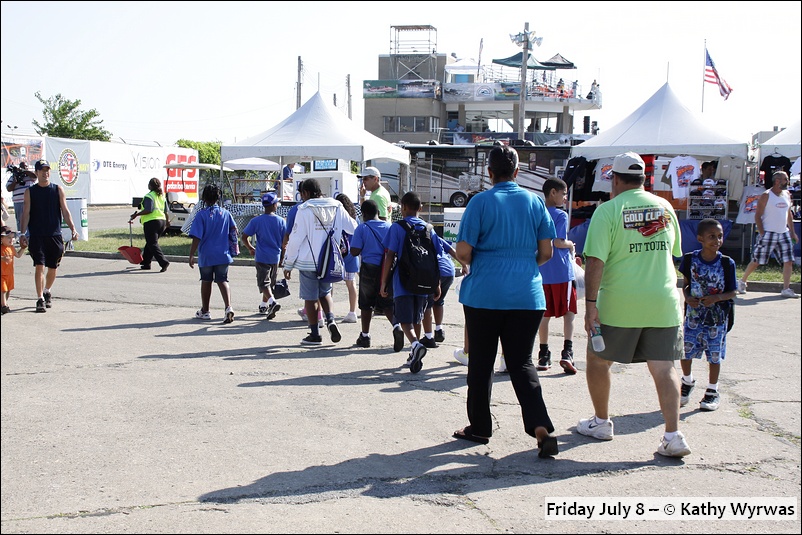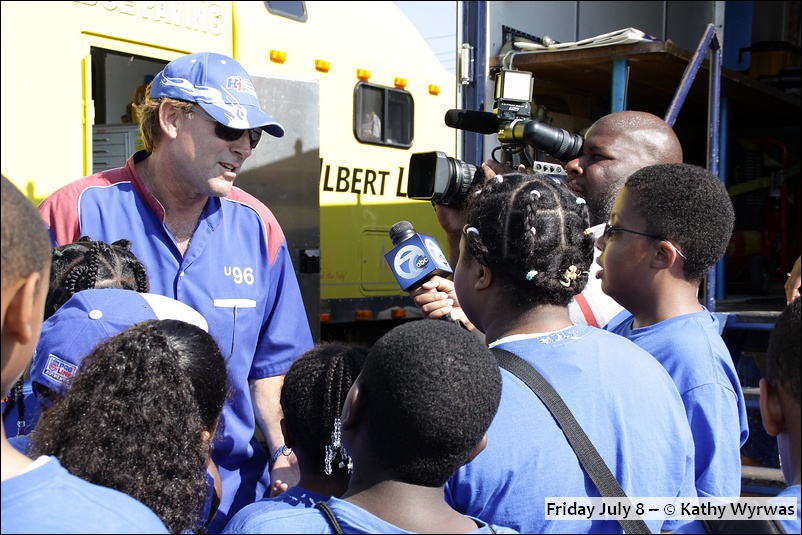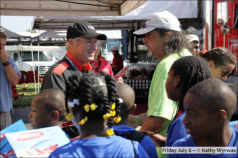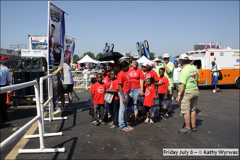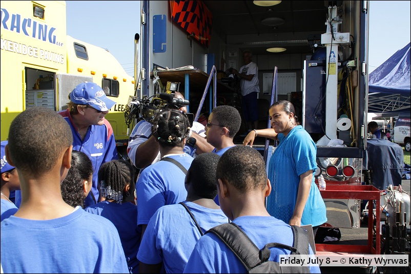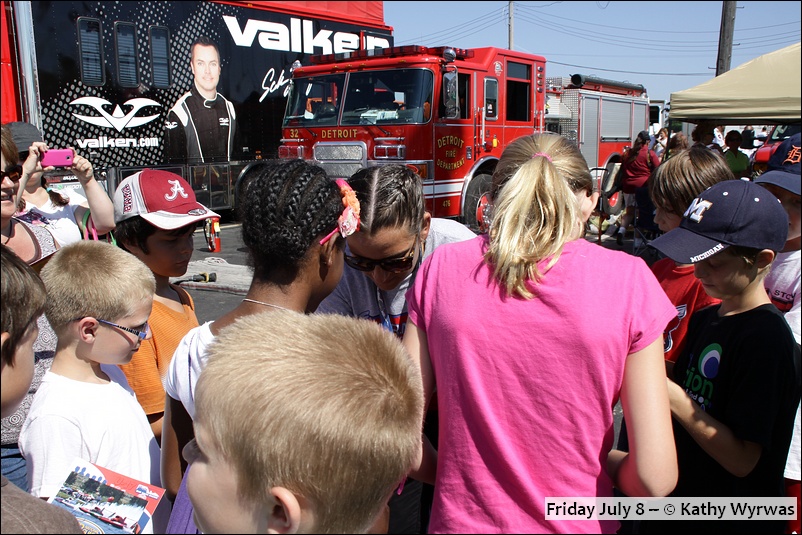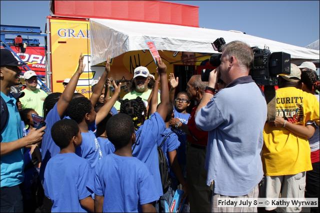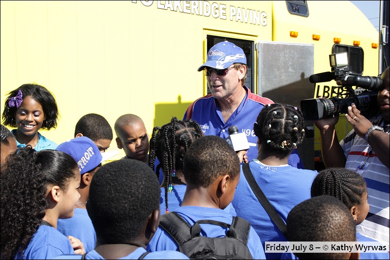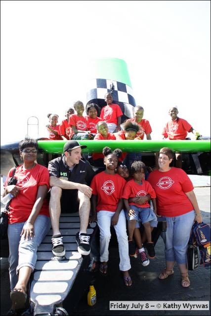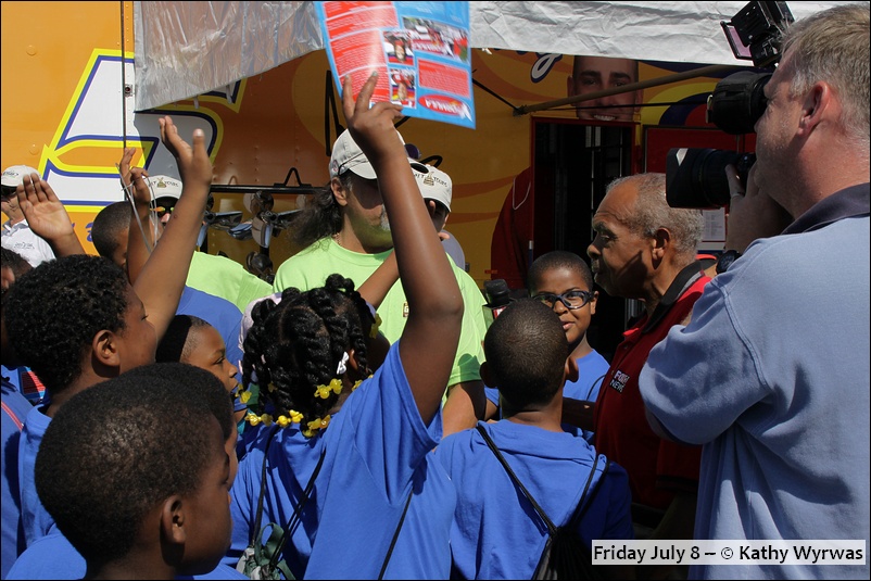 Instead of a media interview, these kids got a great photo op on the U-21 with driver Brian Perkins.