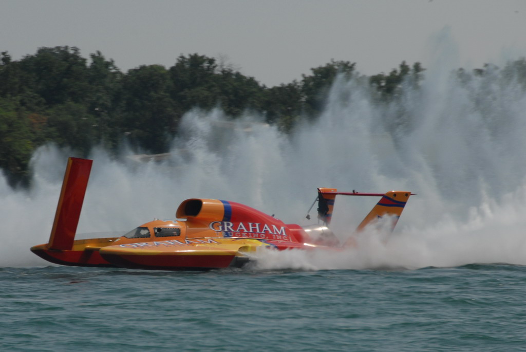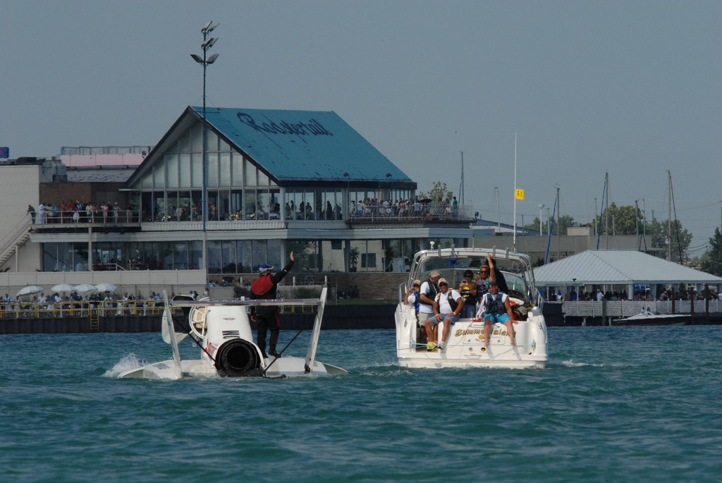U100 under towGreg Hopp being towed in after the Gold Cup race waving to the fans