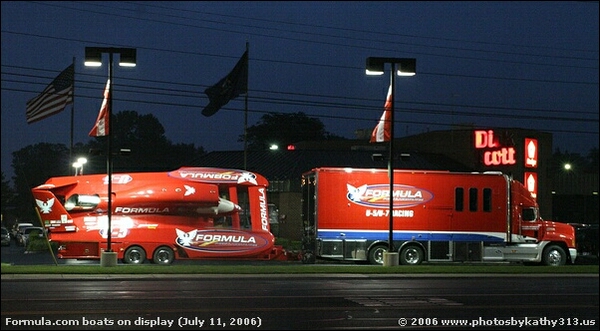 U-5 FormulaBoats.com I with its trailer, on display outside of Dick Scott Dodge