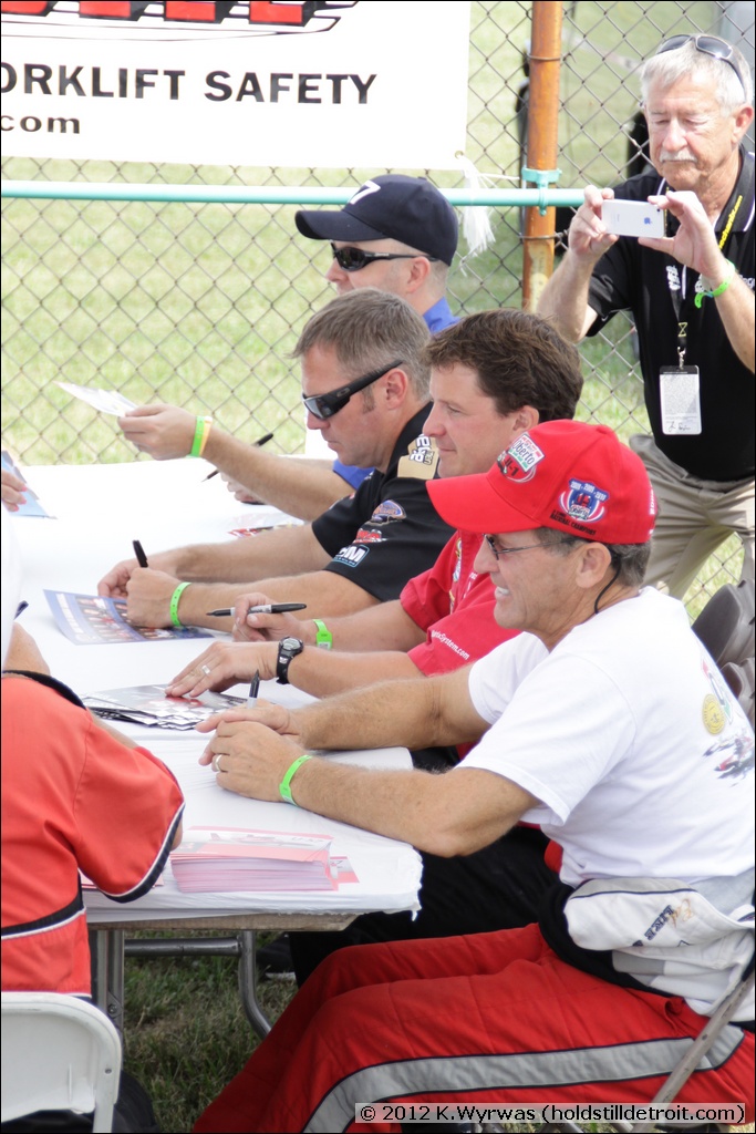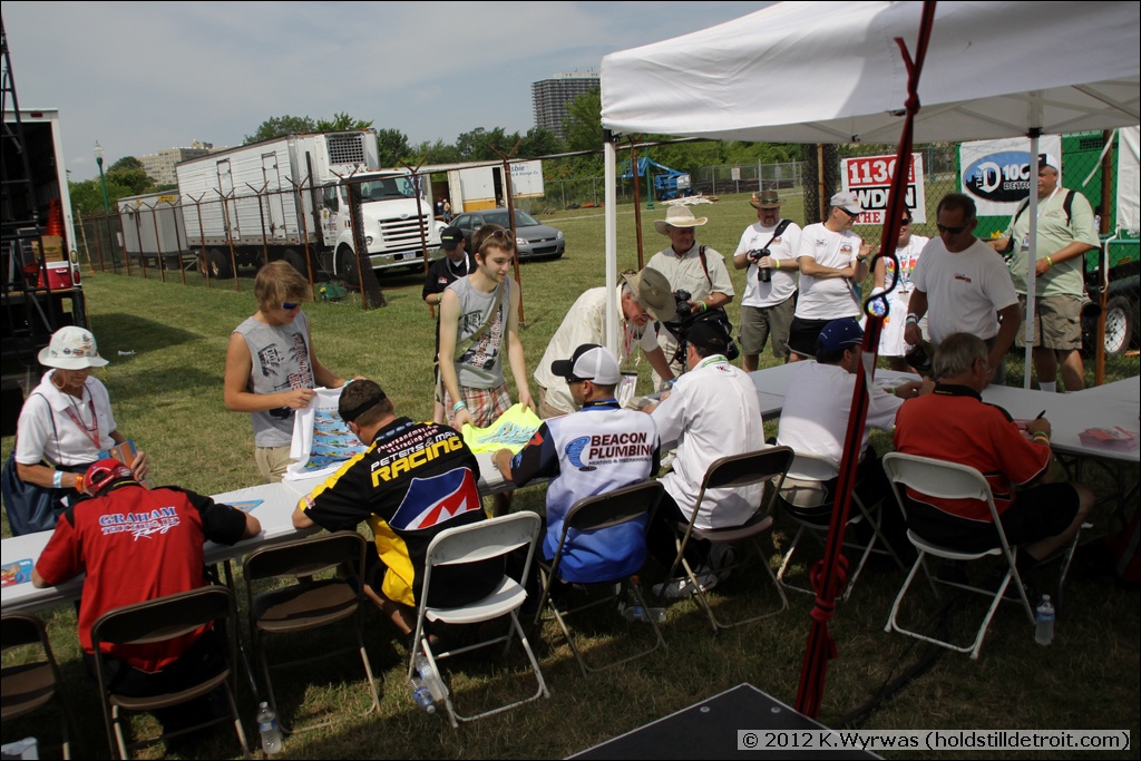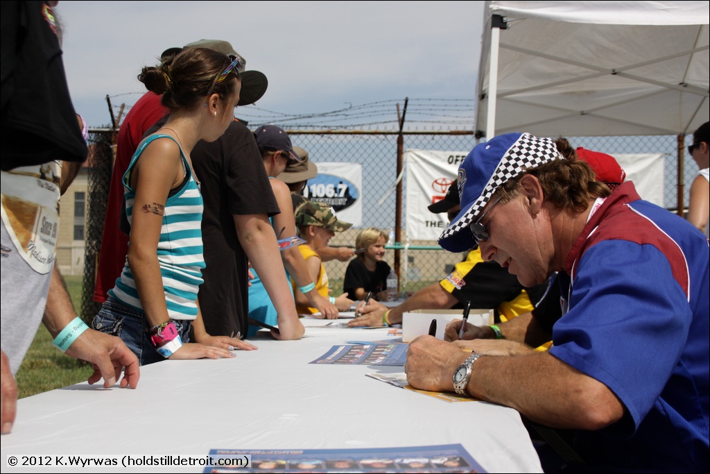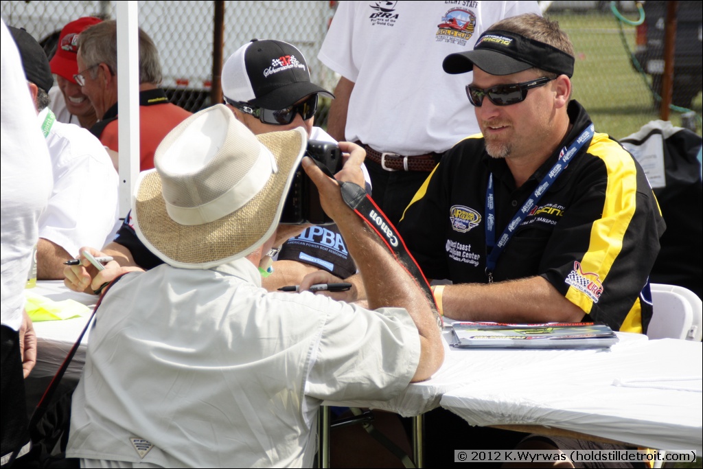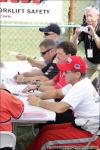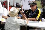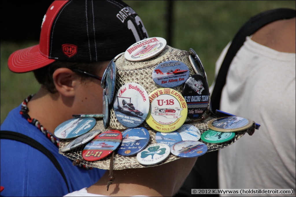 Showing off the "lucky race hat"